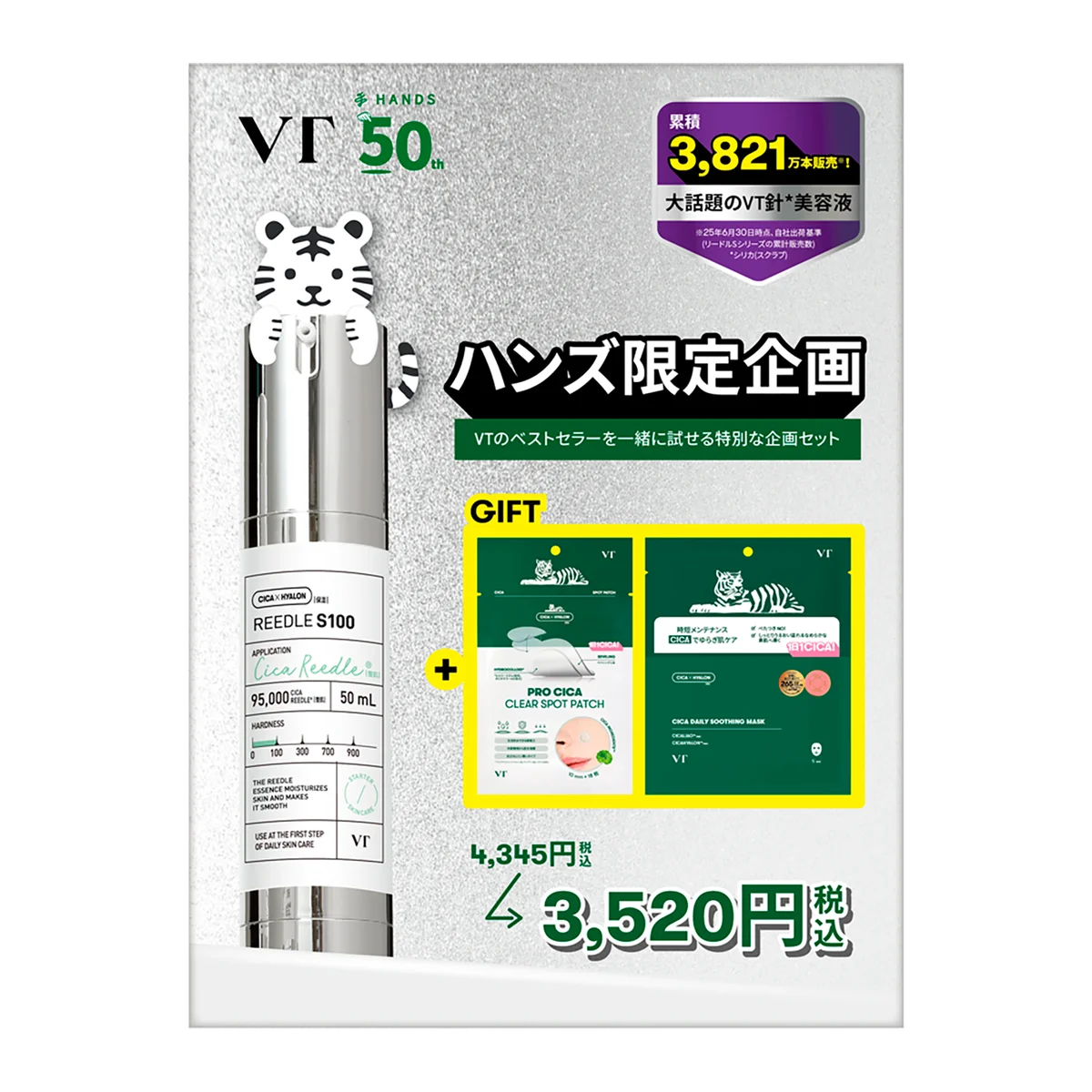 | 限定販売 | VT | リードルS ハンズ50周年記念 VT特別企画セット | 3,520円 | リードルSショット、クリアスポットパッチ、デイリースージングマスクをセット化。VTのベストセラーをお試しで一度に体験可能。 | 限定販売 |