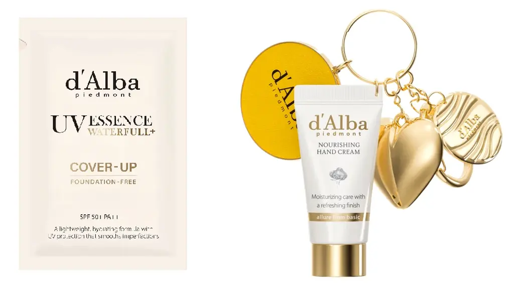 ダルバ商品を税込2,000円以上購入した場合、サンクリーム(カバーベージュ)とVCAサンクリーム2mLのパウチが提供されます。税込4,000円以上購入の場合は、上記に加えてハンドクリームのキーリングがプレゼントされます。