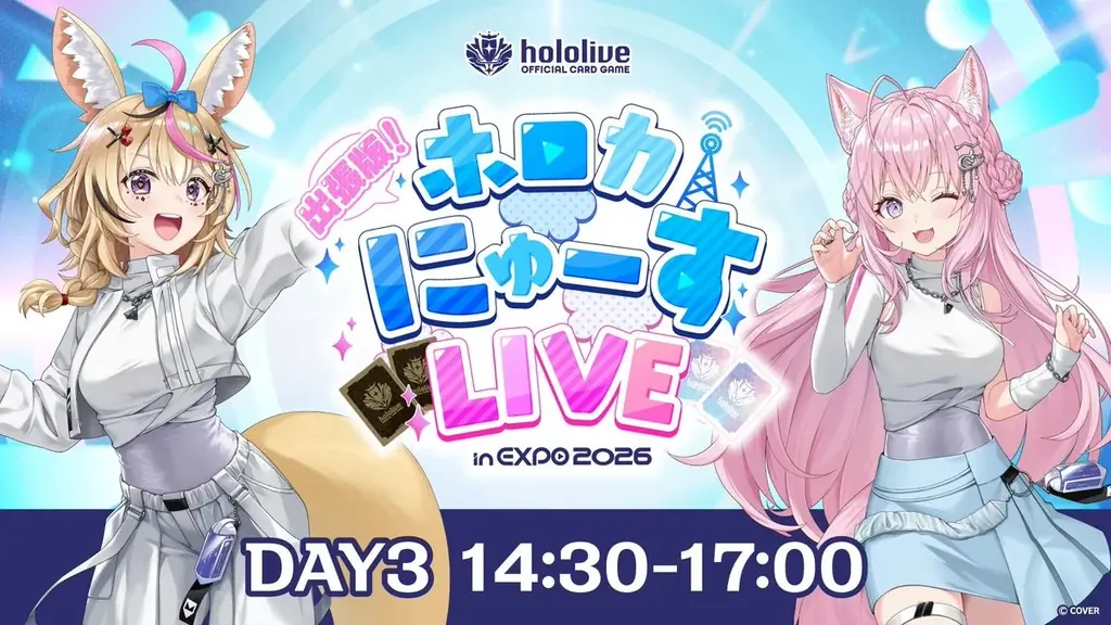 | 配信・ステージ番組名 | 配信:「【ホロカ】TCG業界に革命起きる…!?夢の新技術でホロカを遊んでみた!」/ステージ:「出張版!ホロカニュースLIVE in EXPO2026」 |