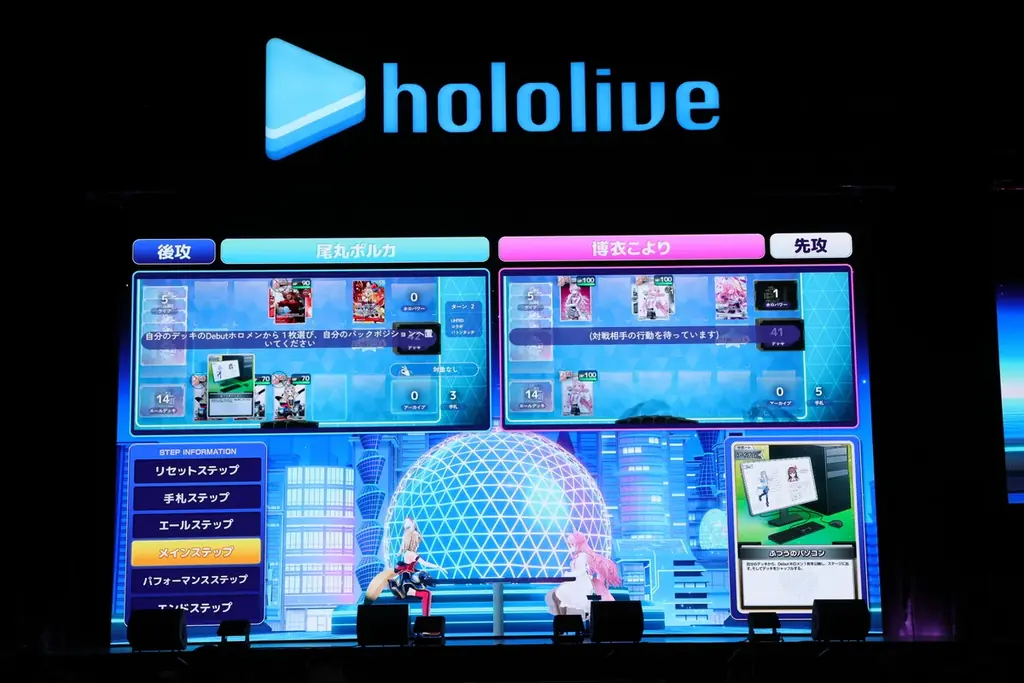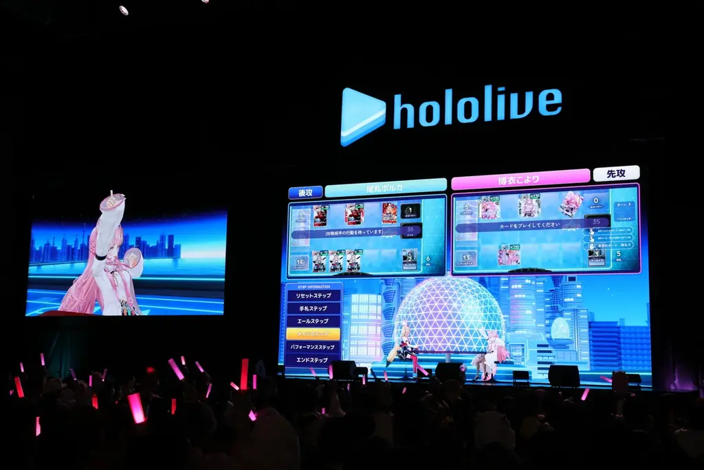 『hololive SUPER EXPO 2026』のステージでは会場のファンとオンライン視聴者の双方に向けてデモンストレーションが行われ、スクリーンに表示される演出と実際のカードプレイがシームレスに結び付く様子が披露されました。ステージ開催日は2026年3月8日です。