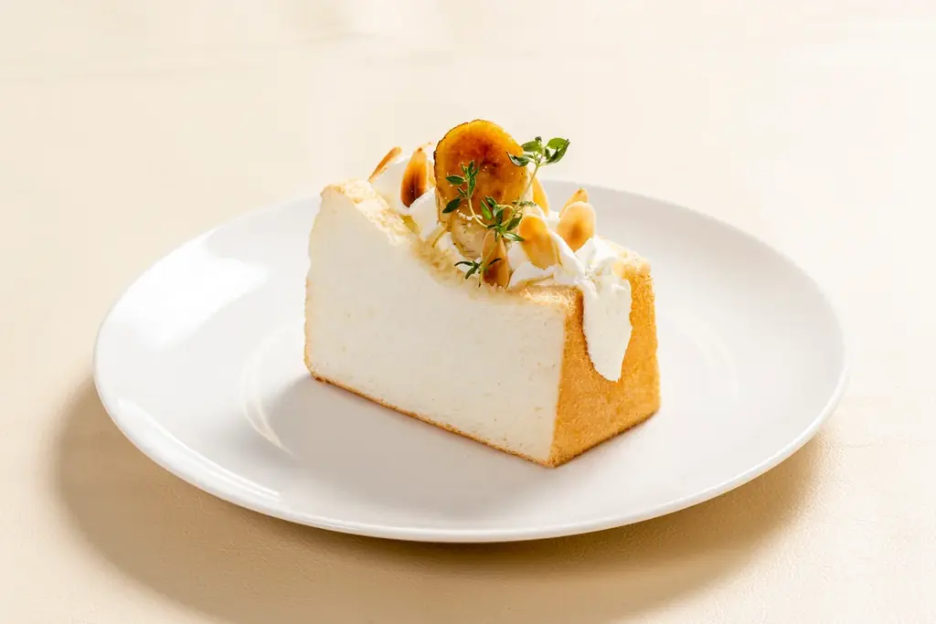 まえばし産の高級バナナを使ったシフォンサンドは、バナナの風味とシフォンの口当たりを活かした一品として提供されます。