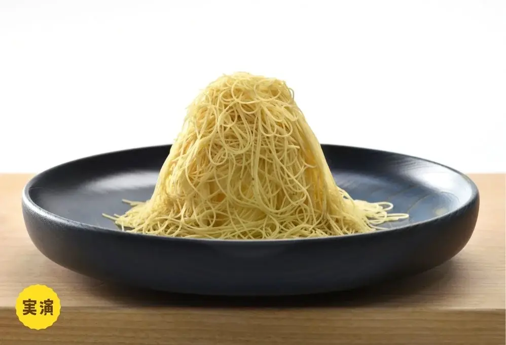 - 通常の麺より約3倍太い極太麺を使用。こってりしたオリジナルソースとの組み合わせが特徴。