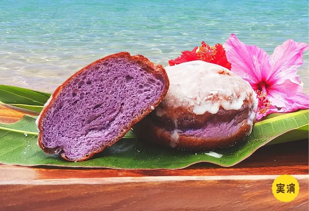 - 沖縄県産紅イモを生地に練り込み、シュガークレイズでコーティング。鮮やかな色味と紅イモの自然な甘みが特徴。