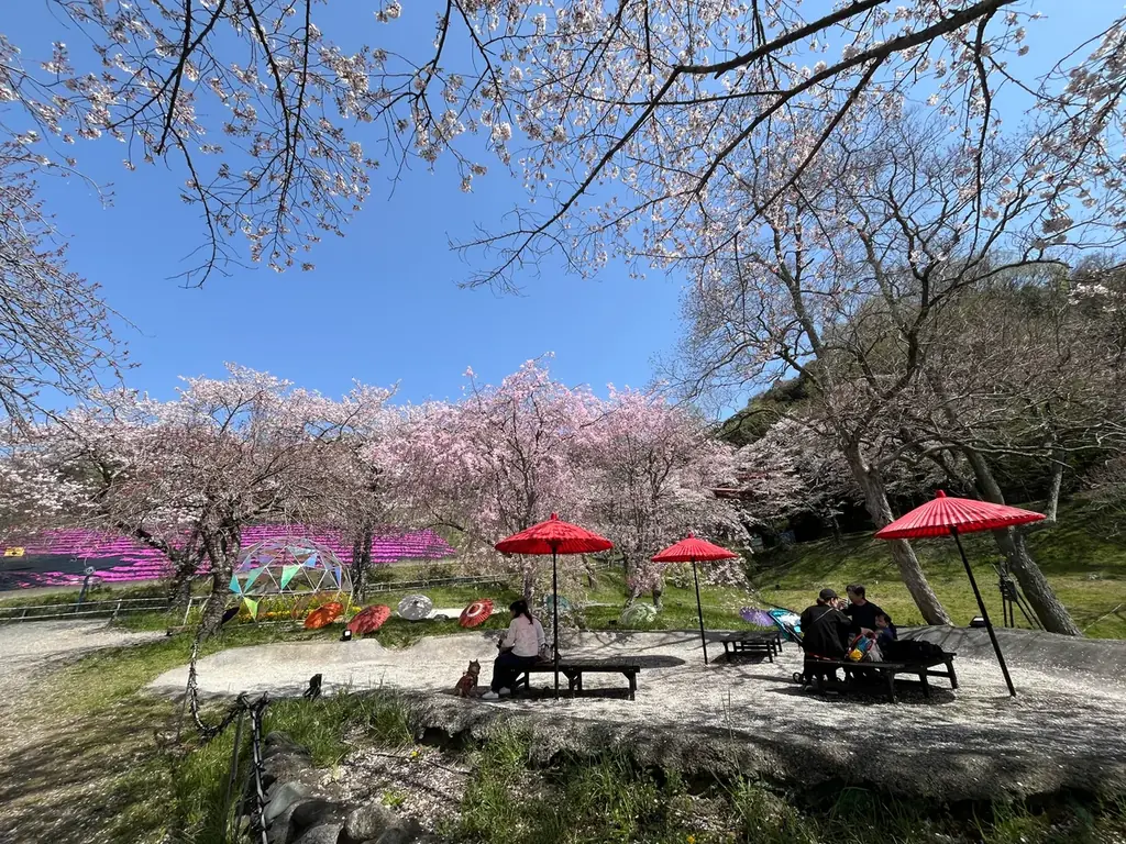 - 風天(絶叫吊り橋)・マッスルモンスター・ペアリフト・F-1カート・スカイライダー・極楽パイロット:桜の季節ならではの景観を活かしたラインナップ。