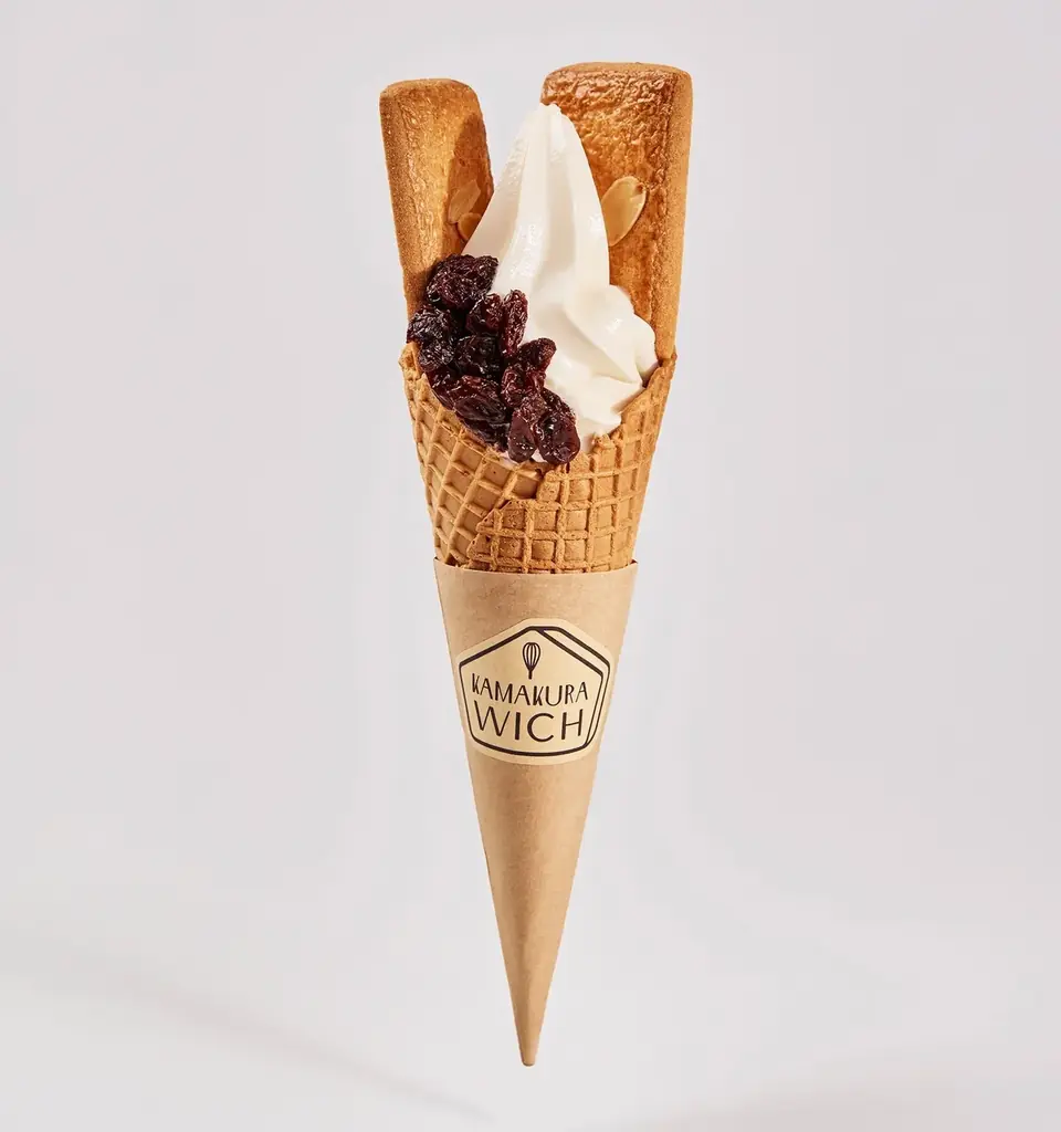 - ラムレーズンソフトクリーム:550円(税込) — 自家製ラムレーズンと鎌倉ビスケをトッピングしたソフトクリーム。