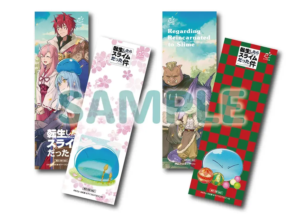 - 販売協力店にてかなで文庫『転生したらスライムだった件』シリーズから1冊購入ごとに1枚配布。