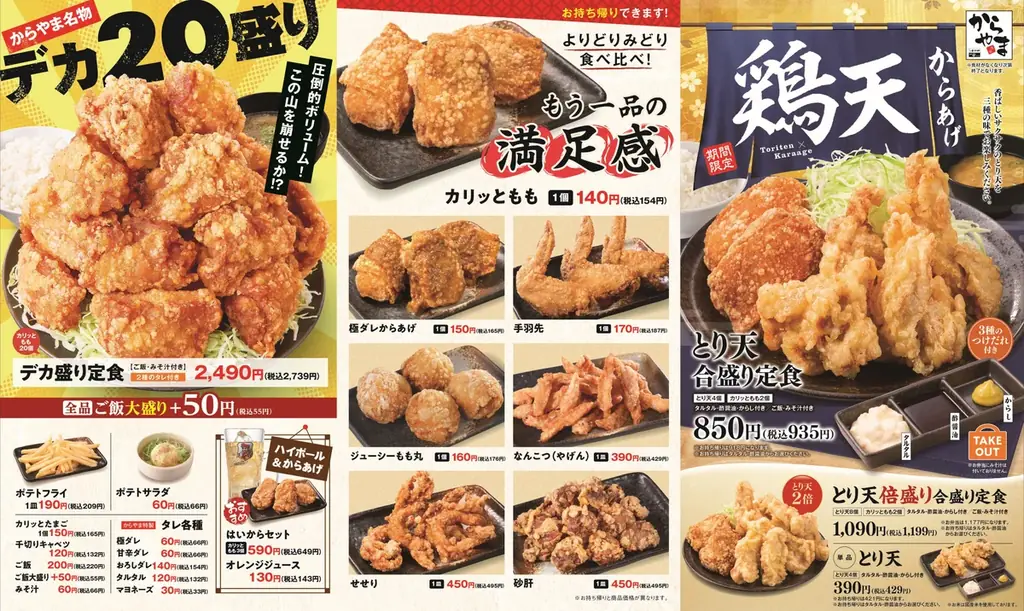 店内・テイクアウト・からあげ縁での価格と提供形態