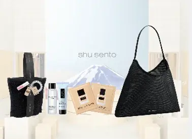 - 税込16,000円以上の購入で「shu sento コンプリートセット」をプレゼント(上記内容に加えてオリジナルバッグを付与)。
