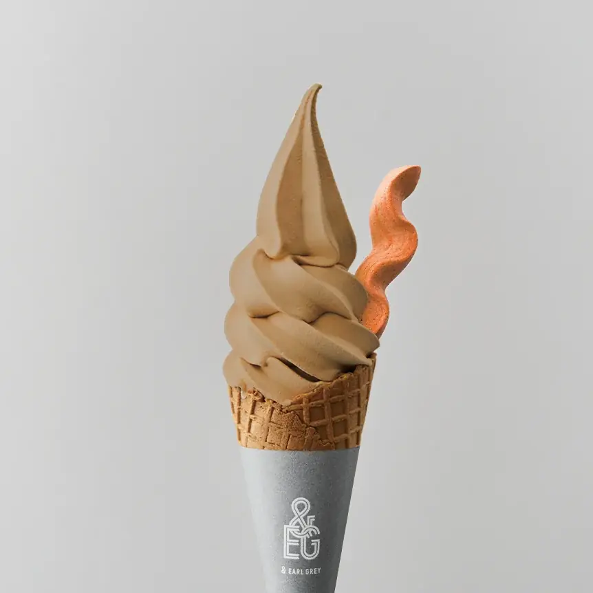 看板商品であるアールグレイリッチミルクは、天然ベルガモットの香りを活かした濃厚な紅茶ソフトです。本商品は“食べるミルクティー”と評され、全国の催事で毎回行列ができるほどの人気を誇ります。