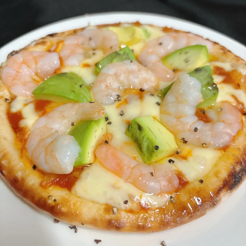 | エビとアボカドのアメリケーヌピザ(名古屋店限定) | 1,540円(ハーフ1,056円) | オマール等で取った濃厚ソース使用 |