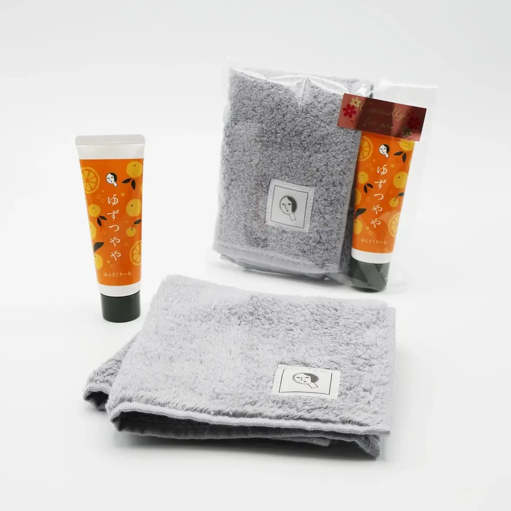 - ゆずつやや はんどくりーむ・ふんわりタオルハンカチ グレー