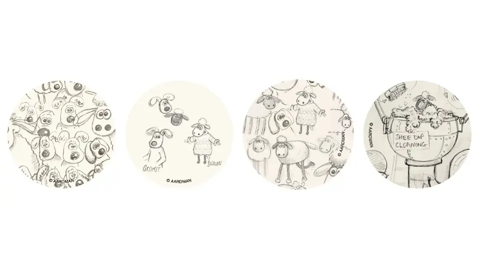 - ショーンのスクリーン・デビュー作。公開30周年を記念して当時の撮影に使われた作品資料を展示(© Aardman / Wallace & Gromit Ltd 1995)。