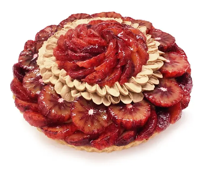 名称:愛媛県 宇和島市 YAMAUCHI FARM産「ブラッドオレンジ」とキャラメルチョコクリームのケーキ。