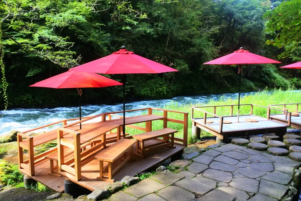 地域のギャラリーや地酒屋などが並ぶ「ゆげ街道」の散策や、鶴仙渓の渓流を望む川床でのスイーツなど、散策とグルメを組み合わせた体験が可能です。