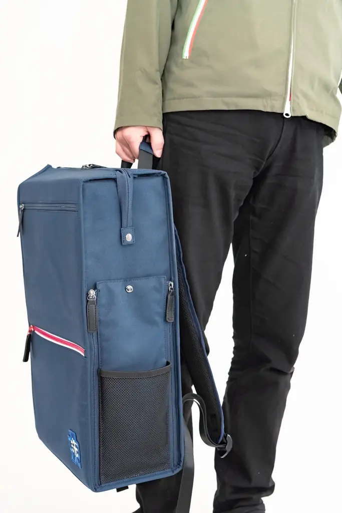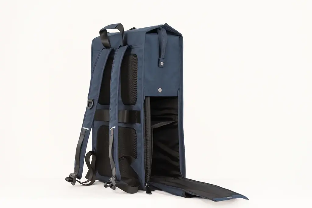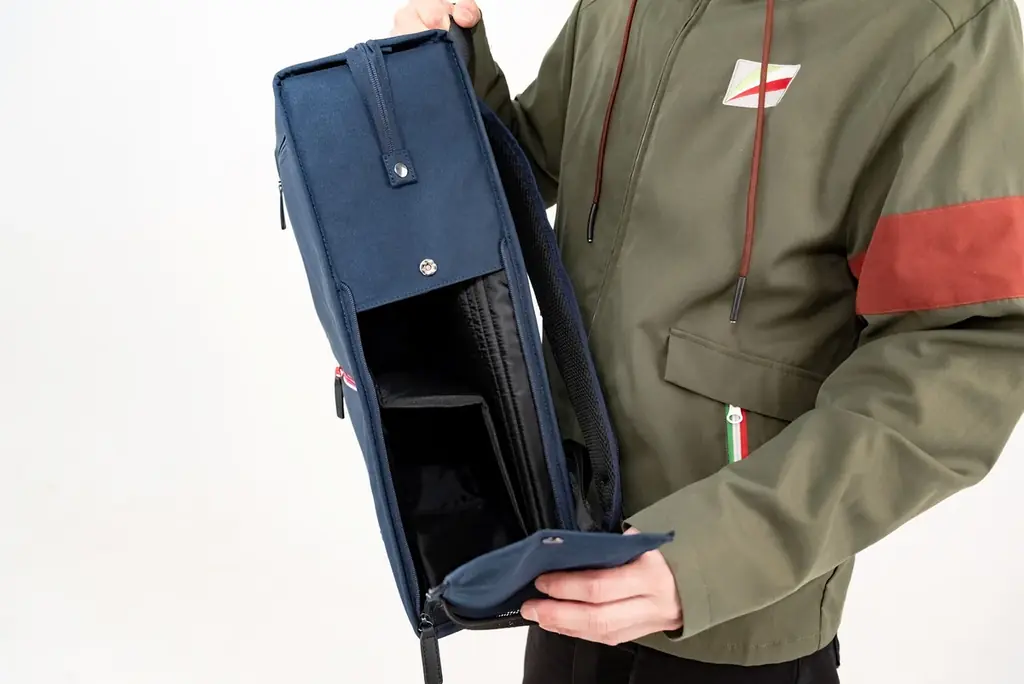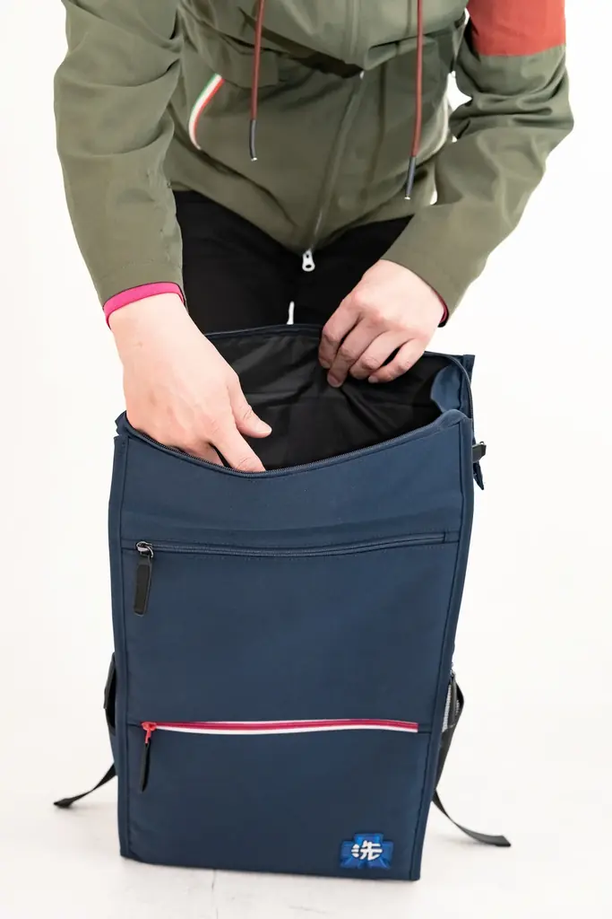 本体は折り畳み式の二層仕切りを搭載しており、荷物を上下で分けられるため、バッグ内部の荷物散乱を防ぎます。Wファスナー仕様の開口部は大きく開き、両サイドからのアクセスが可能な点も日常利用での実用性を高めています。