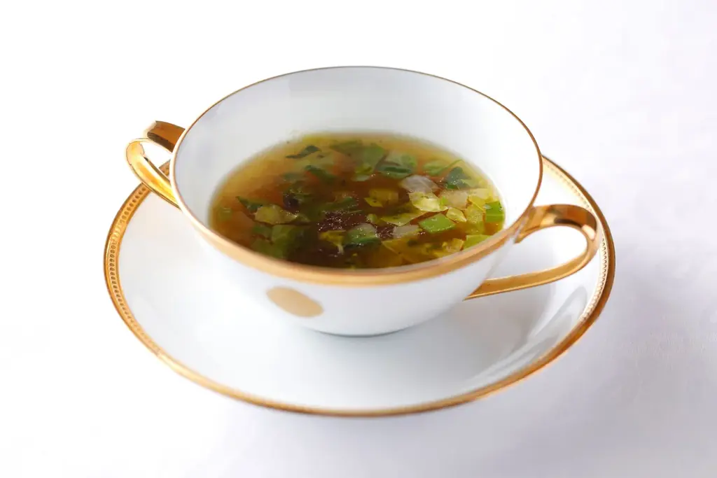 - 春野菜とハーブのコンソメスープ
