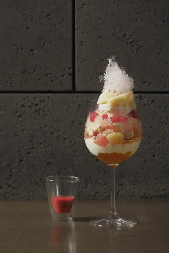 同じく2025年6月14日(土)から8月31日(日)まで、季節のイヴニングパルフェとして『ピーチ パルフェ』も提供されます。このパルフェは、ピーチジャスミンのジュレ、クリーミーなディプロマットクリーム、コンポートした桃とグレープフルーツが層になっており、柑橘の酸味が桃の甘さを引き立てます。