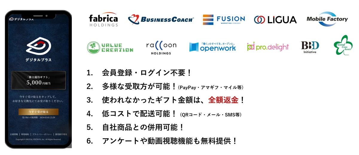 2025年6月16日、株式会社ブラス(証券コード2424、代表取締役社長:河合 達明)は、株式会社デジタルプラス(証券コード3691、代表取締役社長:菊池 誠晃)の子会社である株式会社デジタルフィンテックが運営する「デジタルギフト®」を株主優待として導入することを発表しました。この取り組みは、自社商品とデジタルマネーの併用により、株主優待の魅力を強化することを目的としています。