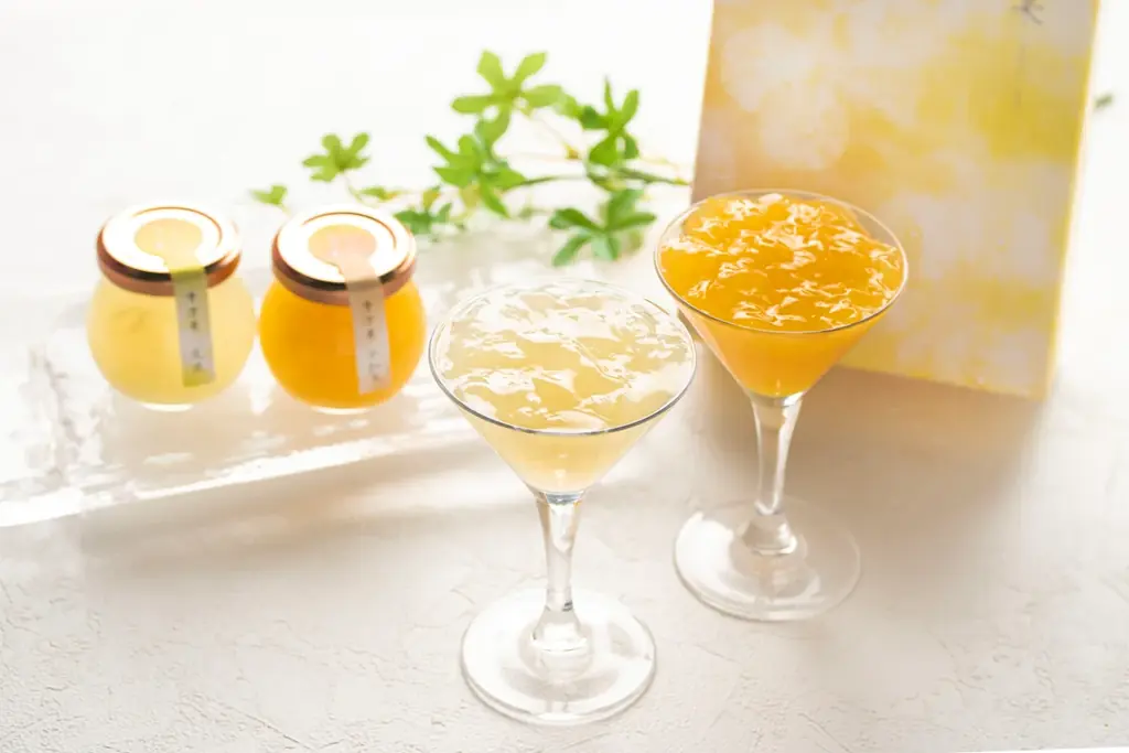 新作ゼリーギフト「清涼果 -不知火・文旦-」は、厳選された柑橘を使用し、和の素材が織りなす奥深い味わいが魅力です。可愛らしい瓶に詰められたこのゼリーは、夏の贈り物として最適であり、様々な食べ方を楽しむことができます。