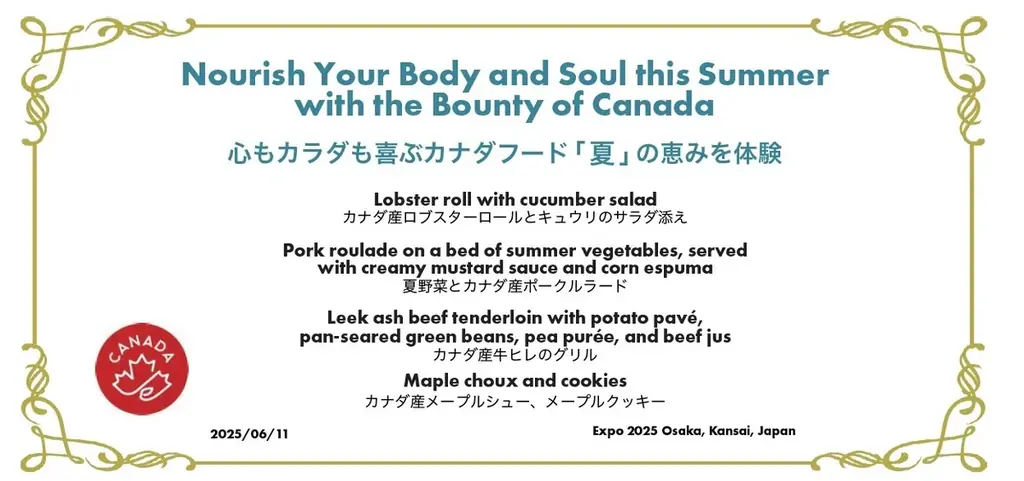 このフェアでは、カナダの旬の食材を使用した特別メニューが提供される予定であり、カナダの食文化をより多くの人々に知っていただく機会となるでしょう。