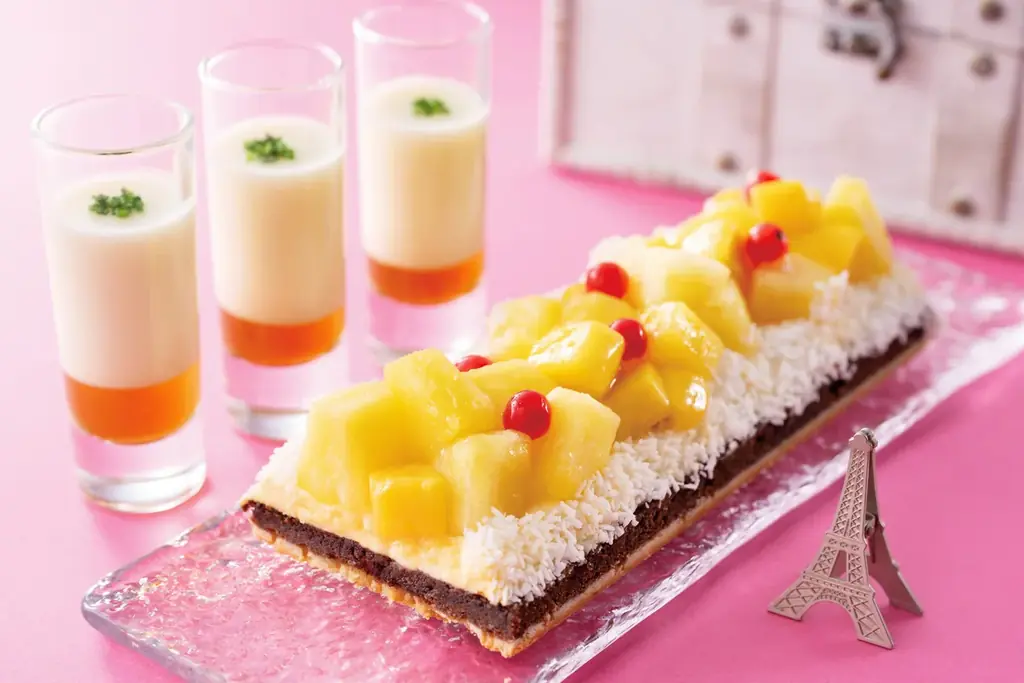 このビュッフェでは、トロピカルスイーツが全20種類用意されており、マンゴーやパインアップルを使用したショートケーキやタルト、ムースなどが楽しめます。特に、マンゴー香る「ココナッツのシフォンケーキ」や、パッションジュレが爽やかな「エキゾチックチーズケーキ」など、南国の味わいを堪能できるスイーツが揃っています。
