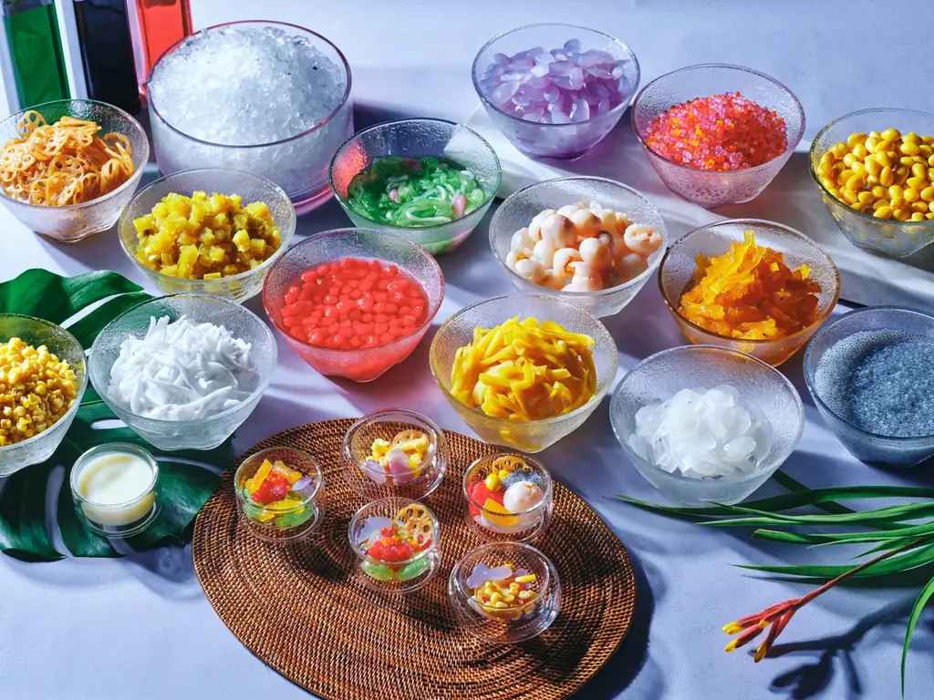 「ファンタジーアドベンチャービュッフェ」では、タイの屋台文化を再現したかき氷コーナーも設けられています。ここでは、約14種類のカラフルなトッピングを用意し、オリジナルのかき氷を作ることができます。