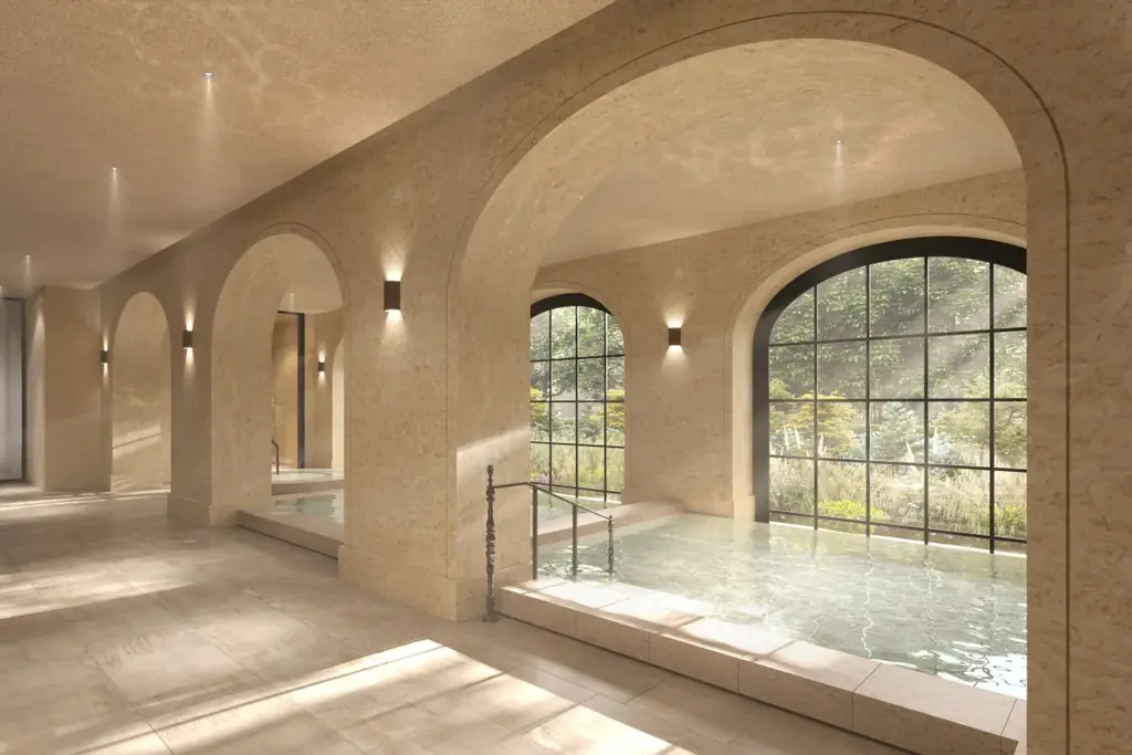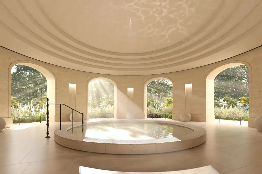 スパエリアは、古代ローマにタイムスリップしたかのような空間を提供し、美しい庭園の景色を楽しみながらリラックスできるアウトドアバスや、インドアバス、サウナ、トリートメントサロンが完備されています。温泉は掘削予定で、湧出しない場合は運び湯にて配湯される予定です。