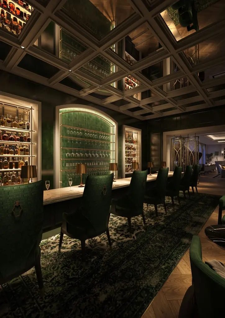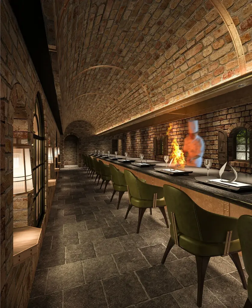 さらに、古城に眠る撞球室をイメージしたバーもあり、ビリヤード台を想起させる空間で特製カクテルや厳選されたワインを楽しむことができます。友人や仲間と共に過ごす社交の場として最適です。
