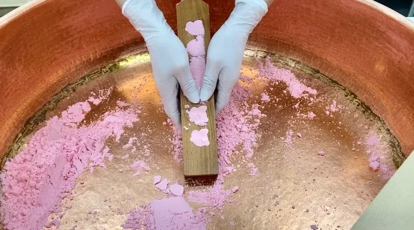 伝統的な木型を使用し、流れる水の波紋を表現。