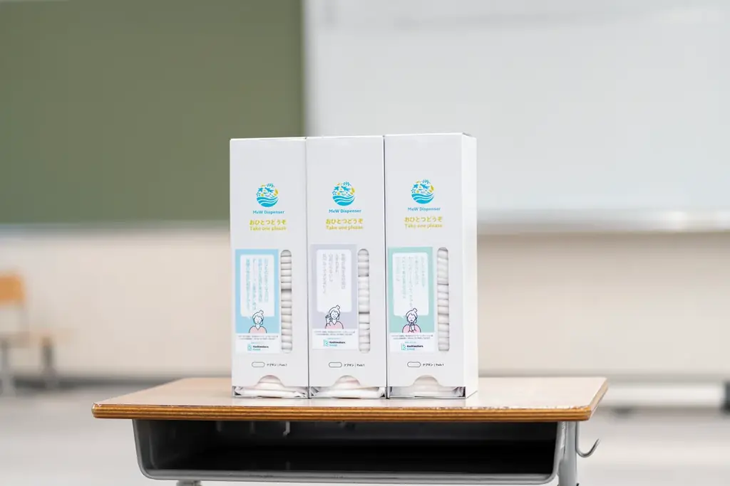 寄贈されたナプキンはどんな形で学校に設置されてるの?