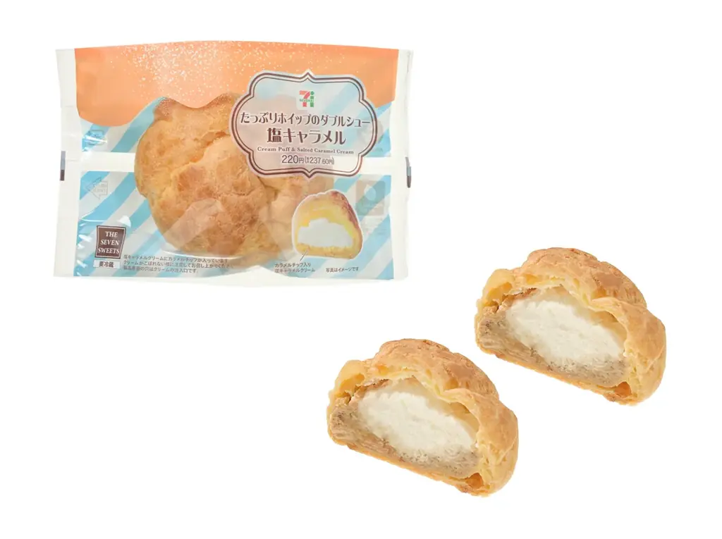 | たっぷりホイップのダブルシュー 塩キャラメル | 237.60円 | 7月1日(火)~順次 | 沖縄県除く全国(東北は7月9日(水)~順次) |
