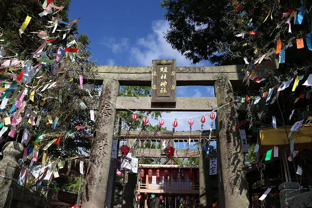 福岡県小郡市の七夕神社(媛社神社)は1200年以上の歴史があり、織姫と彦星を祀る二つの神社が宝満川を挟んで存在。毎年8月に夏祭りも開催され、多くの人で賑わいます。