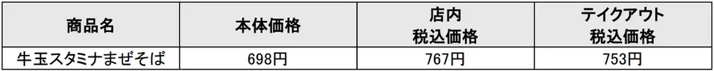 | 牛玉スタミナまぜそば | 698円(店内税込767円) | 2025年7月4日(金) | さっぱりとした味わい、特製たれ、トッピング可能 |