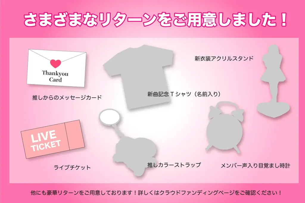 | リターン内容 | 限定グッズ、オリジナル目覚まし時計、特別試写会招待など |