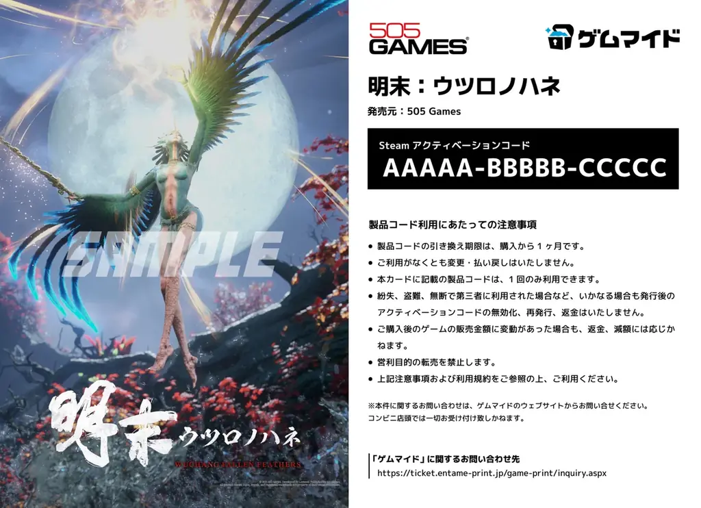 以上の情報から、『明末:ウツロノハネ』は新たなゲーム体験を提供するソウルライクアクションRPGであり、予約特典やブロマイド付きの購入形態が魅力的なポイントとなっています。この機会にぜひ、ゲームの世界に触れてみてはいかがでしょうか。