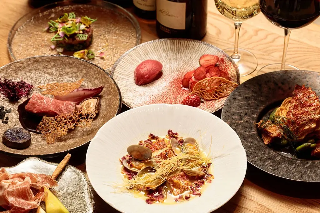 料理は、季節や仕入れ状況により内容が変更される場合がありますが、全8品から成る本格イタリアンフルコースを楽しむことができます。