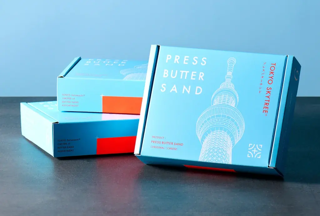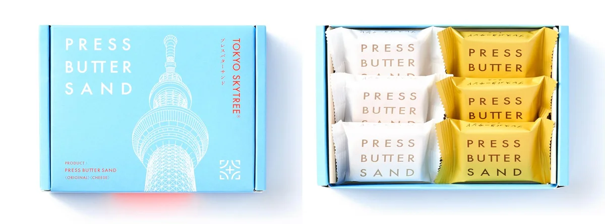 東京スカイツリーは、日本を代表する観光スポットであり、そのふもとに位置する「PRESS BUTTER SAND 東京ソラマチ店」限定での発売となるこの詰合せは、スカイブルーの青空にそびえ立つスカイツリーの姿を大胆にデザインした印象的なパッケージが特徴です。旅行の思い出を呼び起こすような特別な一箱に仕上げられています。