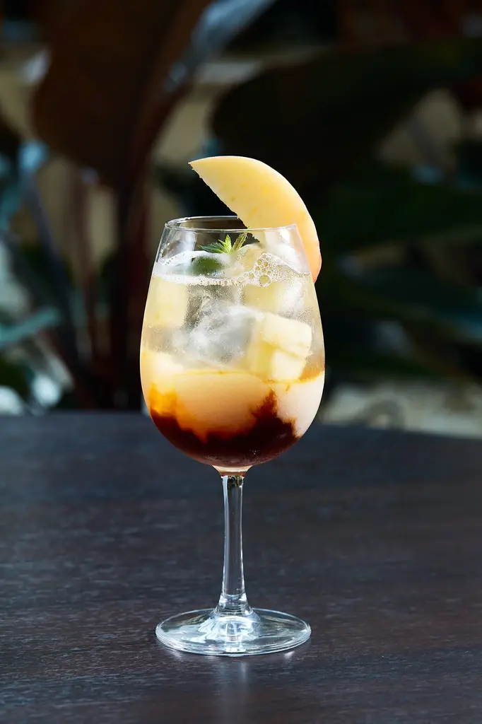 - ピーチティーソーダ: 上品な紅茶と特製のピーチソースに炭酸を加えたオリジナルソーダ。桃の果肉を添えた華やかな一杯で、料金は¥1,100 (税金・サービス料込)です。