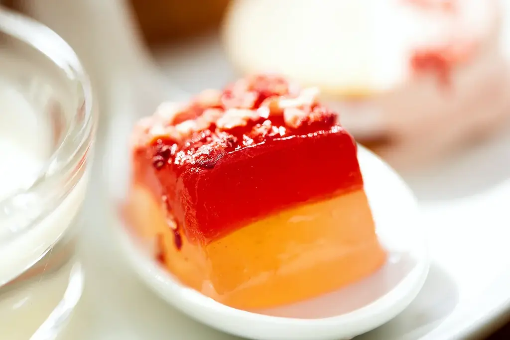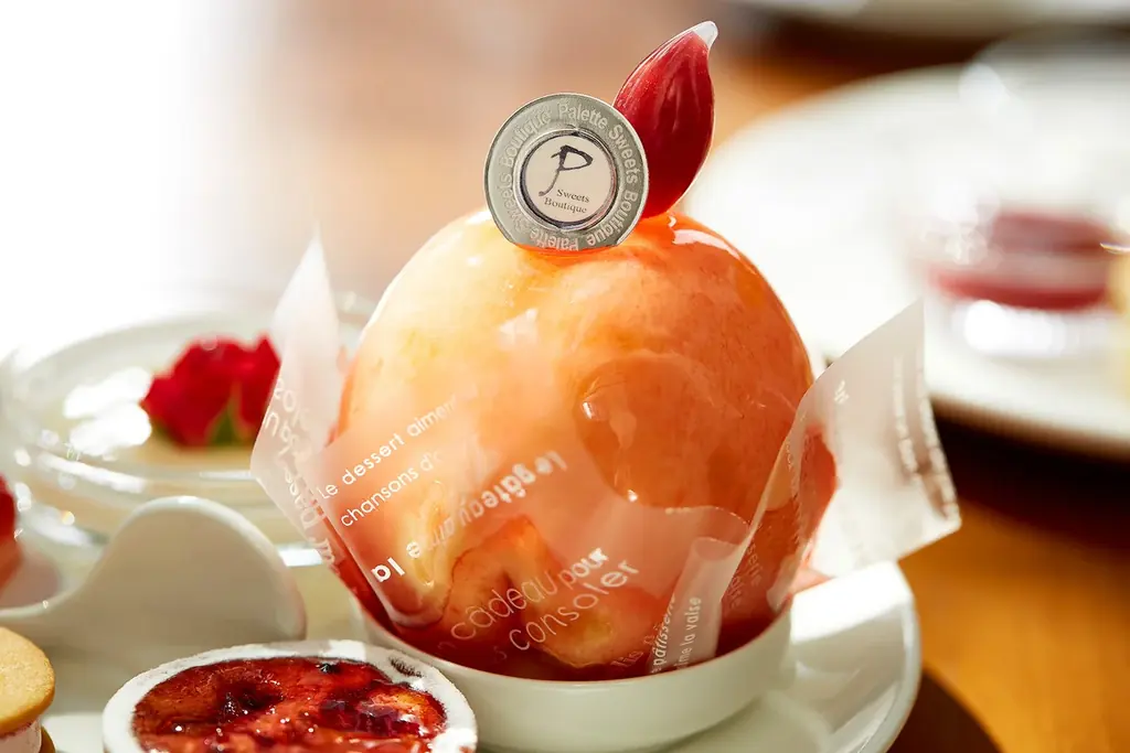- 桃とライチのパートドフリュイ: ライチの香りと桃の甘みを凝縮したひと粒スイーツ。