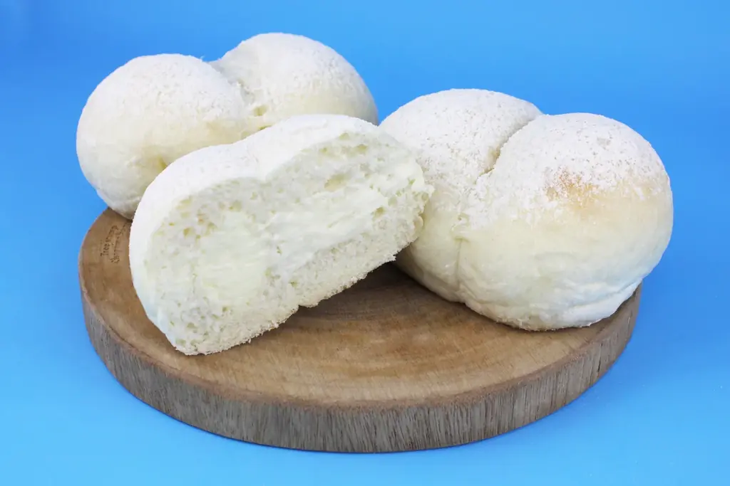 北海道産小麦を使用し、湯種を練り込んだもっちりふわふわなパンに、北海道産練乳のミルククリームを注入しました。真っ白いふわふわの生地と甘いミルククリームは相性抜群で、食後のデザートにもぴったりです。