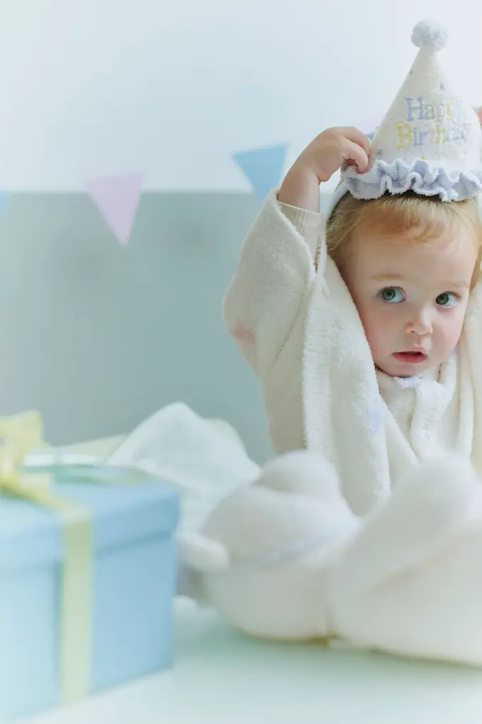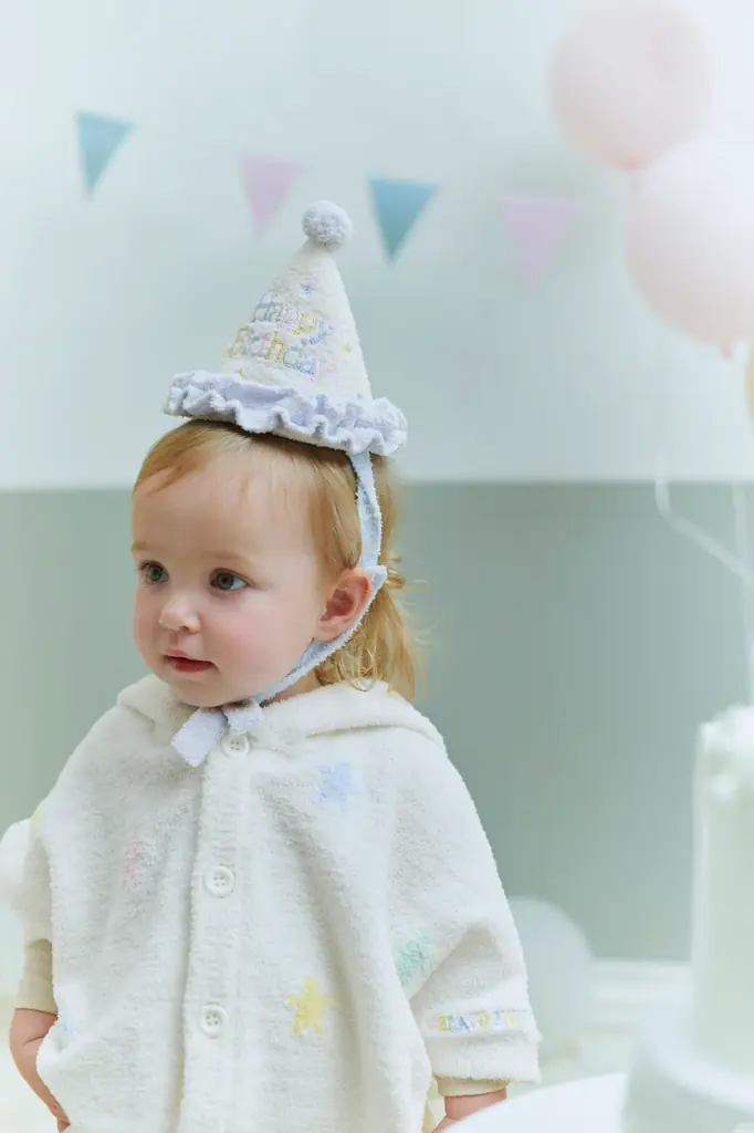 「特別な今日を、やさしく包みこむ一着を。」というコンセプトのもと、コレクションにはバースデーハットやルームウェアなど、赤ちゃんの特別な日を華やかに彩るアイテムが揃います。