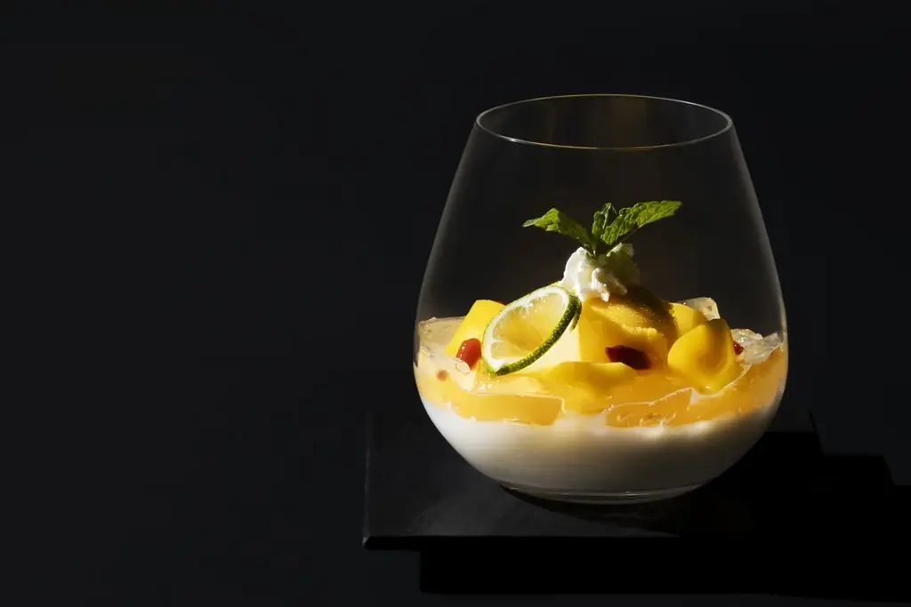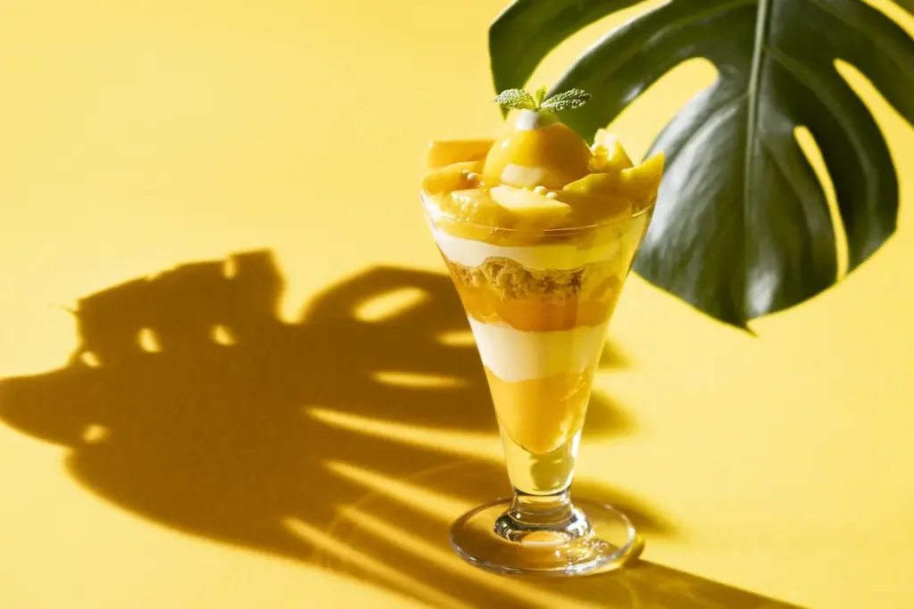 ココナッツミルクプリンと愛玉子のゼリーをベースにしたこのパフェは、マンゴーの果肉とシャーベットが重なり、さっぱりとしたオリエンタルな味わいが特徴です。料金は1,500円(税・サ込)で、2025年7月1日(火)から8月30日(土)までの期間中に提供されます。