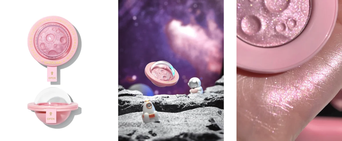 「Lunar Glow Highlighter」は、150以上の国と地域で展開されるグローバルコスメブランド「SHEGLAM」が手がけた製品です。特に、光の当たり方によって繊細に輝きを変える偏光パールを贅沢に配合しており、ひと塗りで華やかなツヤ肌を演出します。頬やおでこ、鼻筋などのハイライトゾーンだけでなく、アイシャドウや涙袋、さらには鎖骨などボディのツヤ出しにも利用できる多機能性が魅力です。