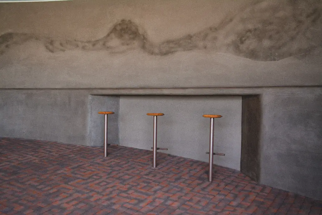 「Niwa Fukuoka」では、土壁に廃棄される珈琲の粉末を再利用した仕上げ材を使用しています。細かく乾燥させた粉を左官材に混ぜ込むことで、微細な質感と自然な色味を加え、やわらかな陰影を生む壁面を実現しました。このような素材の再活用は、空間に温かさと環境への配慮をもたらしています。