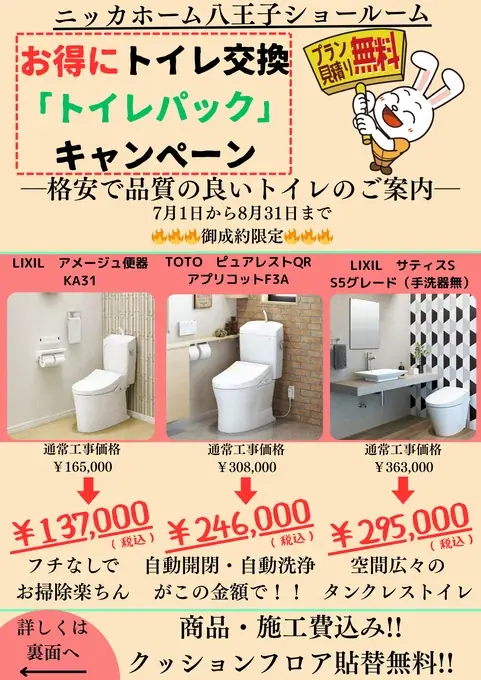 | キャンペーン名 | 夏のトイレリフォームキャンペーン |