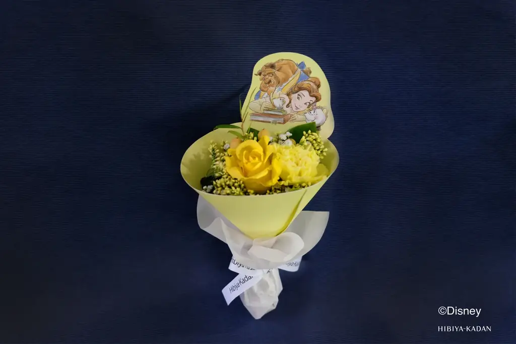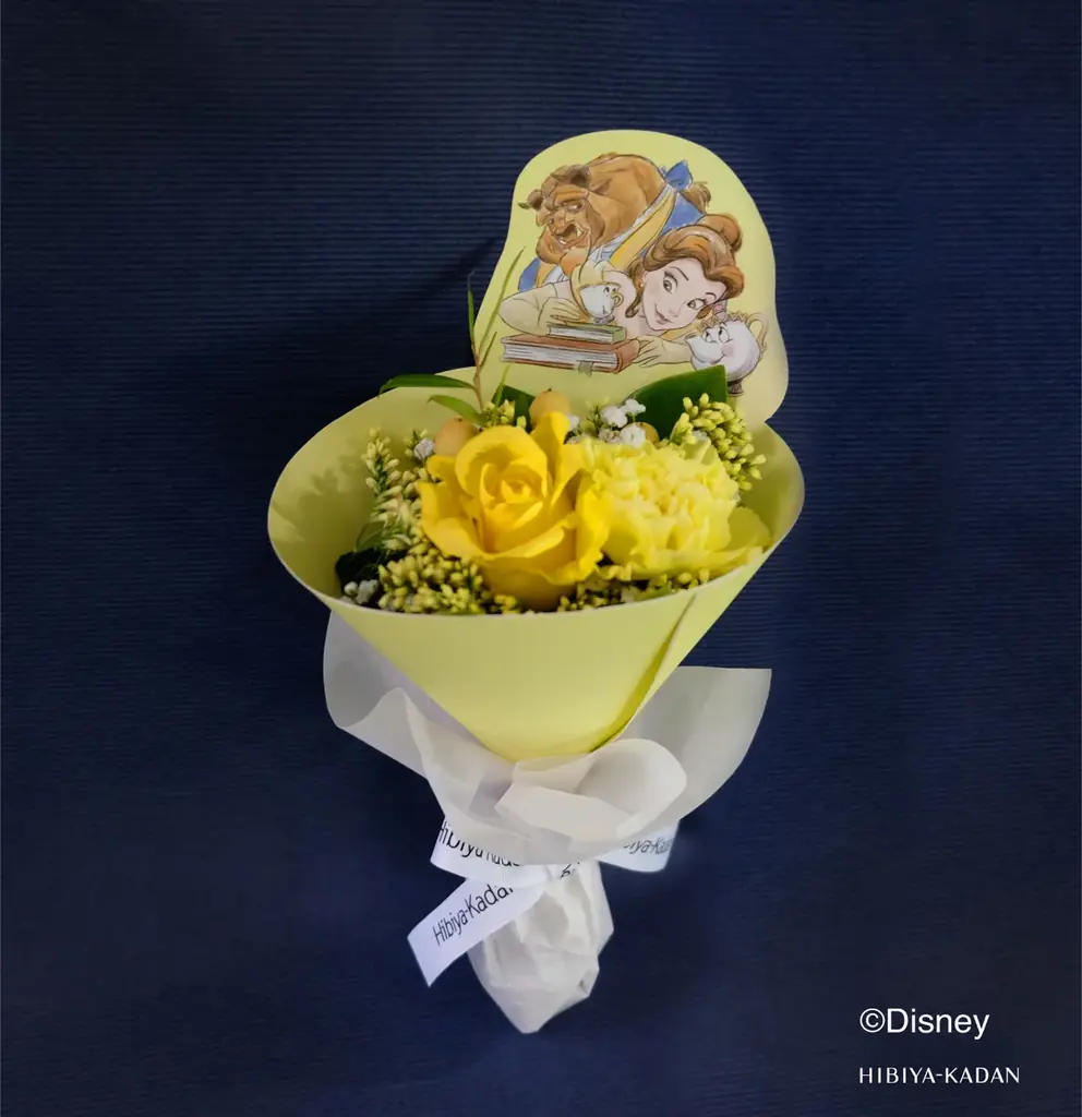 ベルのドレスをイメージしたイエロー系の可愛らしいミニブーケです。ディズニーファンへのちょっとした贈り物にぴったりです。