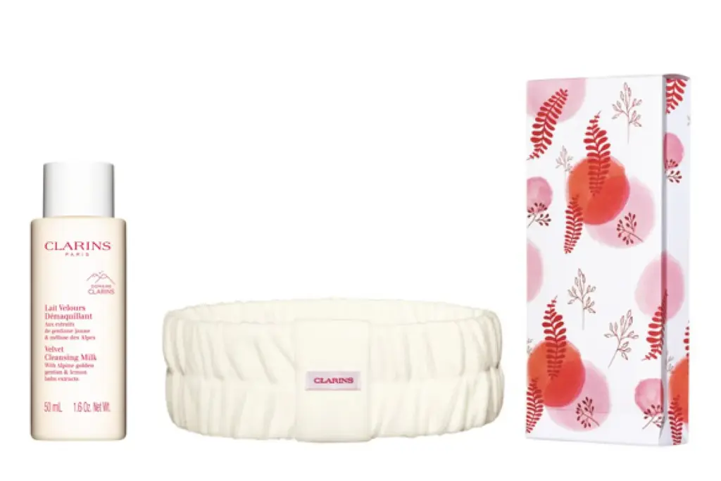 クラランス製品を8,800円(税込)以上購入されたお客様には、「ベルベット クレンジング ミルク」50mLとオリジナルヘアバンドがプレゼントされます。ただし、プレゼントはお一人様いずれか1点限りで、数量限定のため、なくなり次第終了となります。