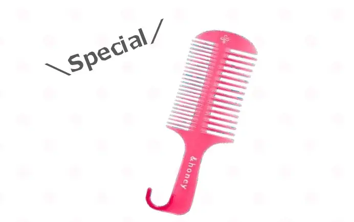 ハチミツ成分が配合されたオリジナルトリートメントコームのおまけが付いています。このコームは、トリートメント効率と浸透をサポートし、艶やかで潤いのある美髪へ仕上げます。