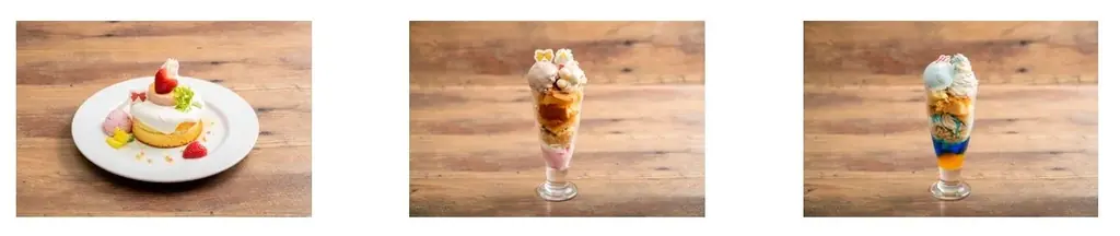 フードメニューは各1,650円(税込)で、各期間に応じた特別メニューが提供されます。デザートメニューも用意されており、15周年デザートプレートやチョコレートパフェなどが楽しめます。