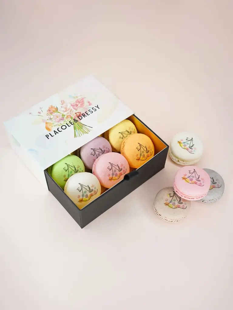 厳選されたはちみつを贅沢に使用し、しっとりと焼き上げたフィナンシェです。口の中に広がる優しい甘さが特徴で、大切な人への贈り物にぴったりです。 - お花とドレスのジュレマカロン
